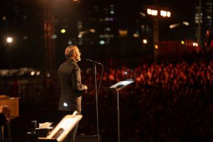 وی اظهار کرد: قطعه آخری که میخواهیم برایتان اجرا کنیم اثری است که هر زمان در هر جا اجرا کردیم مورد لطف و محبت هممیهنانمان قرار گرفتیم. آنچه امروز نیاز داریم انسجام و همدلی است و از شما خواهش میکنم با تمام وجودتان با ما بخوانید «روزگار غریب» را.